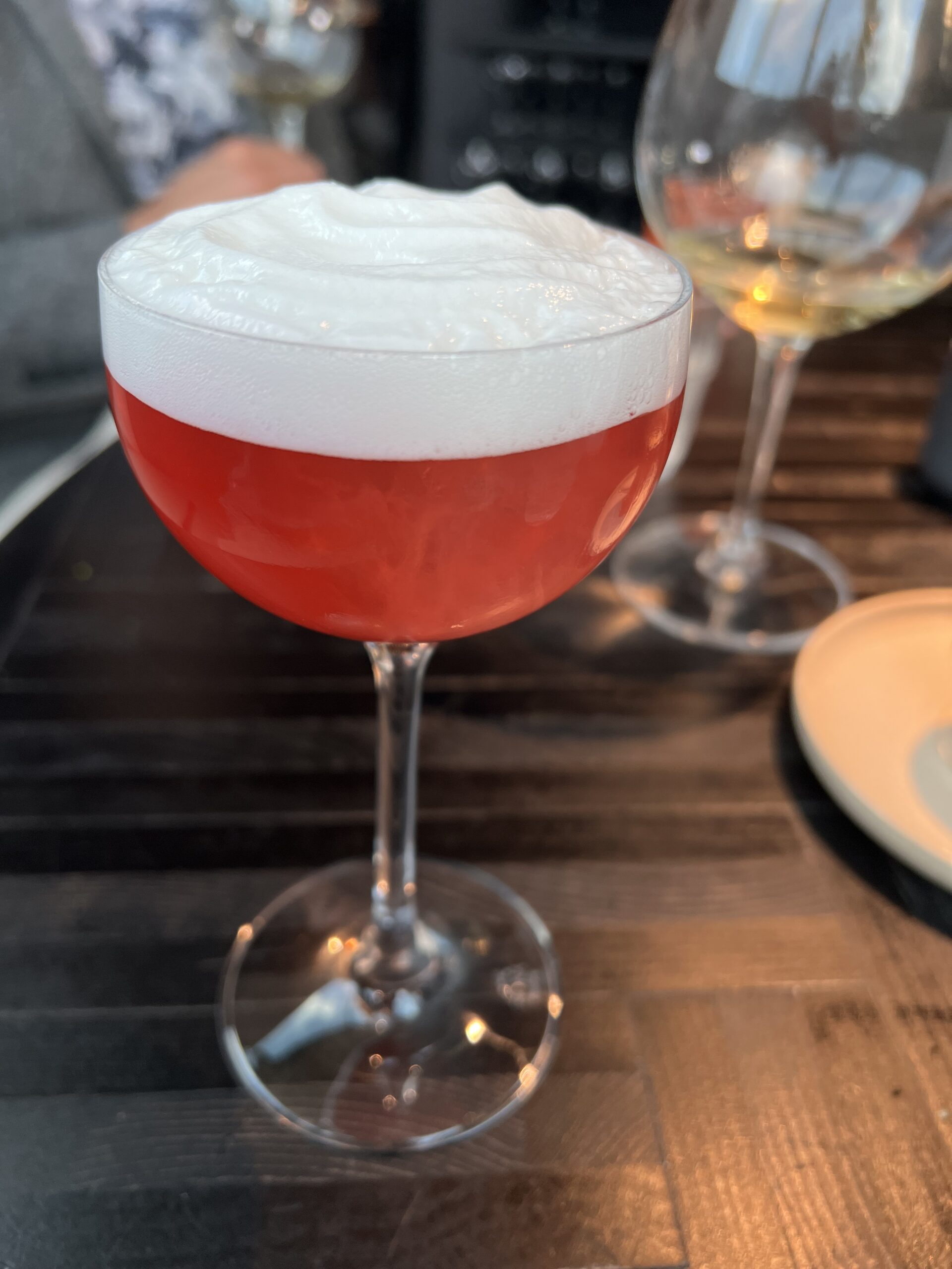 När vi vid matbeställning frågade om viner fick vi Formulär 1A-rekommendationer om viner på glas som kanske hade funkat om vi, liksom sällskapet vid Det Perfekta Bordet™, hade varit förfestsugna 25-åringar*. Men nu råkar vi faktiskt tycka om mat och dryck så vi efterfrågade viner på flaska, eftersom det ger bredare och mer intressanta valmöjligheter. Imponerade av det tidigare Freyja-besöket bad vi också om rådgivning från en av restaurangens kunniga sommelierer.