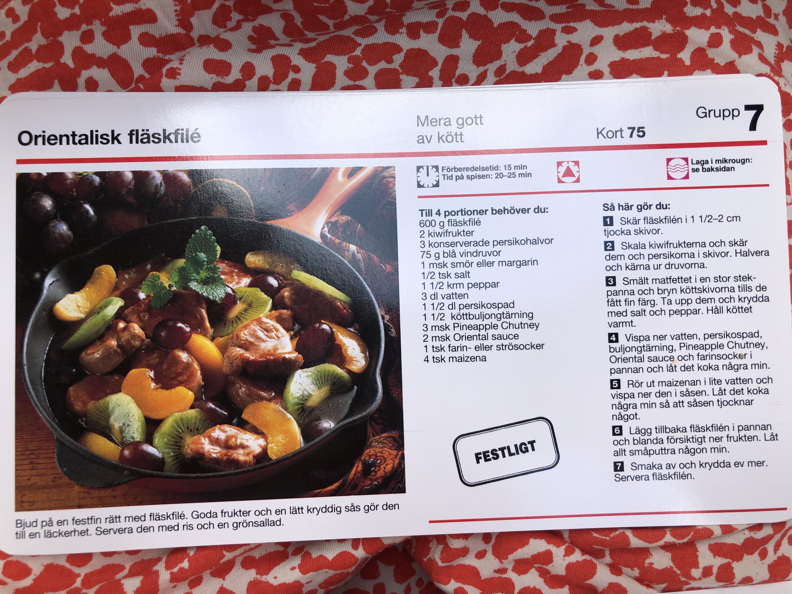 Frukt i maten var poppis! Här kiwi och konserverade persikohalvor i en fläskfilérätt – så blir den ”orientalisk”.