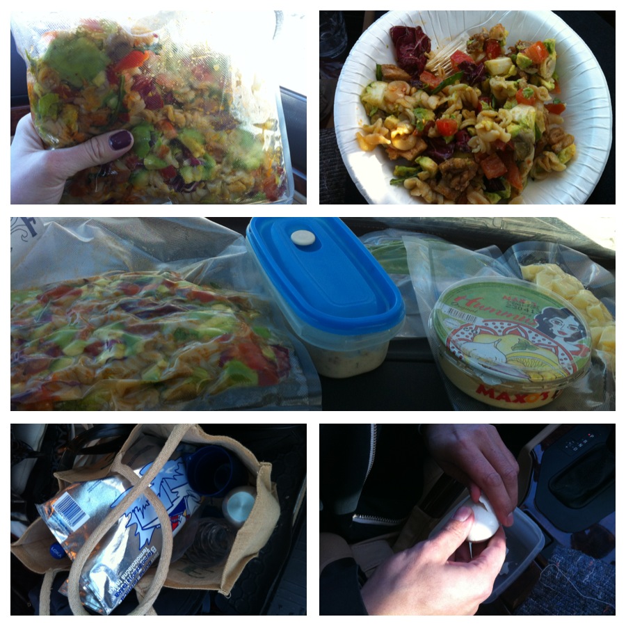 En anledning att jag har valt att vara entreprenör istället för löntagare är att jag vill kunna ha hund. Ibland innebär det att hundar måste följa med på möten 45 mil bort (enkel väg) och då måste man ta bil och då är det bra att ha picknick med i bilen. I torsdags var en sådan dag och jag tackar matguden för möjligheten att kunna vacuumförpacka… det mesta. I torsdags vacuumförpackade vi nämligen en god pastasallad (fusilli, avocado, tomater, gröna blad, kycklingbitar stekta i torkad koriander, spiskummin och berbere) och så vacuumförpackade vi sockerärtor (till snacks) och så vaccumförpackade vi ostkuber (som snacks eller i salladen eller som hundgodis). Det åt vi med en rödlöks-och-keso-röra (i traditionell bunke pga ville kunna återförsluta på resan), hummus (i sin förpackning) och kokt ägg (i bunke pga krossrisken) med salt. Det var så vansinnigt smidigt att bara klippa upp plastpåsen, servera och äta salladen. Tar nästan ingen plats i väskan och är kladdfritt. Sedan tog vi hem påsen, maskindiskade den (trädd över en smal stående bricka) och har nu förpackat en ost i den.