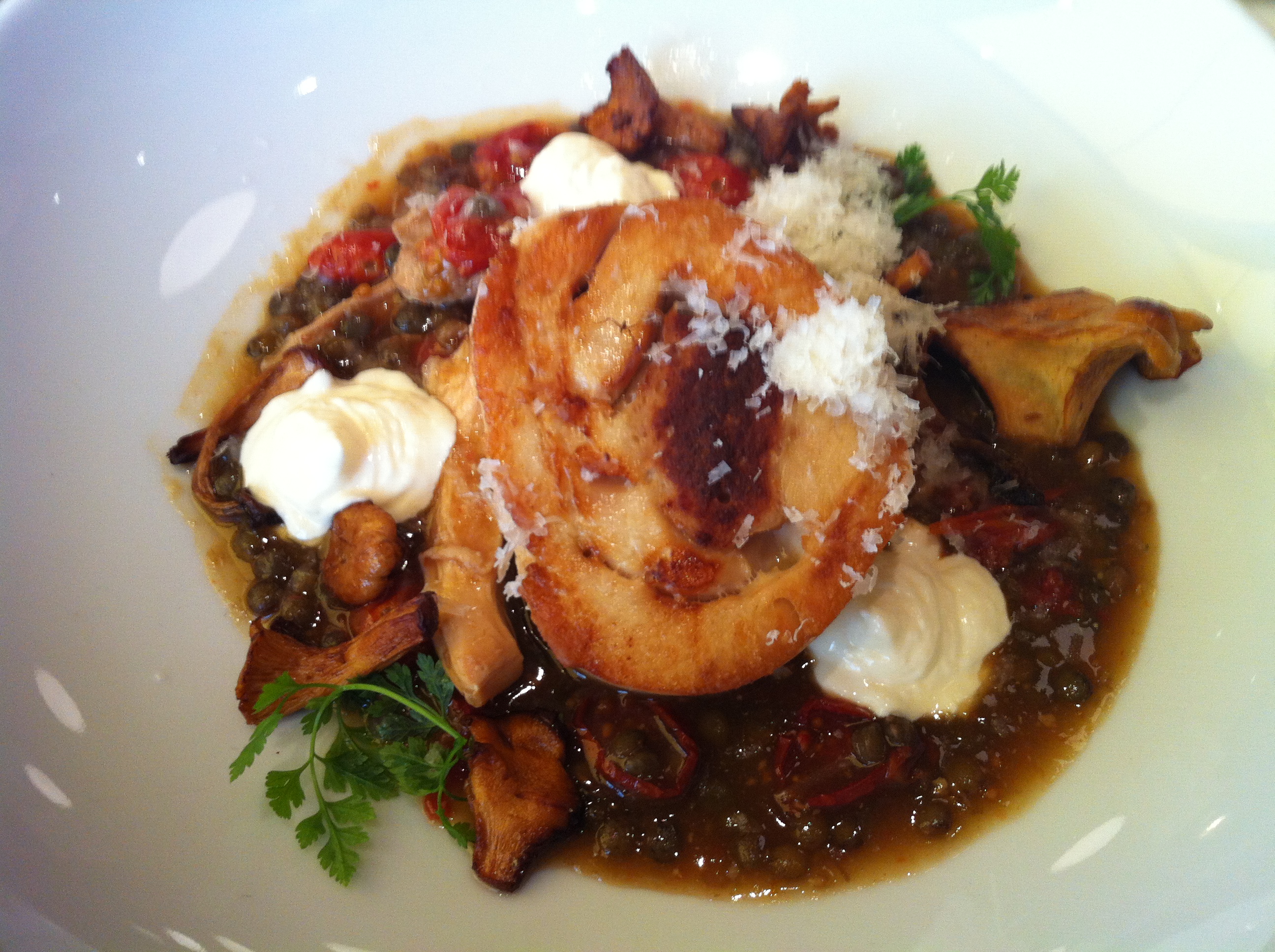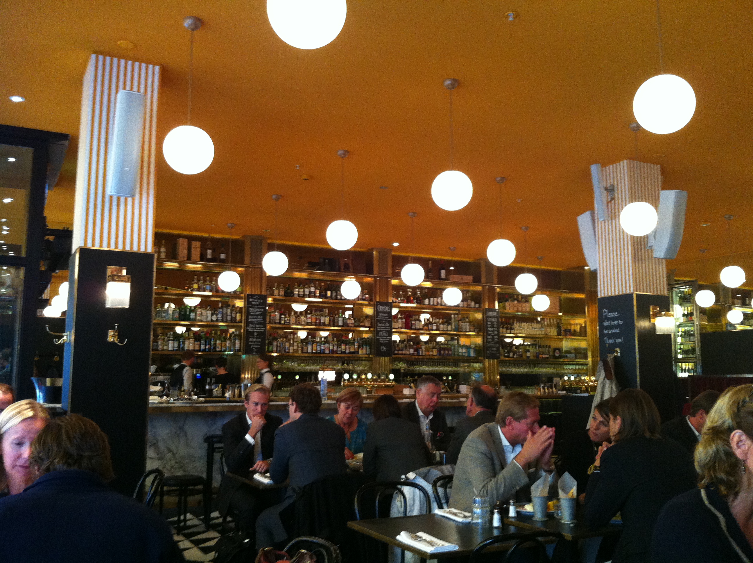Gamla biografen Rigoletto är numer en fransk bistro, inte olik Café Victor i Köpenhamn. Igår åt jag dagens lunch på Bistro Rigoletto, en kycklingrullad med kycklingragu med kantareller. Till det serverades kokt potatis. Maten var god men kycklingrulladen lite torr. Jag tänker att det här är ett ställe dit du i första hand går för stämningen, inte för maten, i alla fall på lunchen. Bardelen är helt magnifik och fransk och mysig, så dit ska jag gå på aw någon dag!
