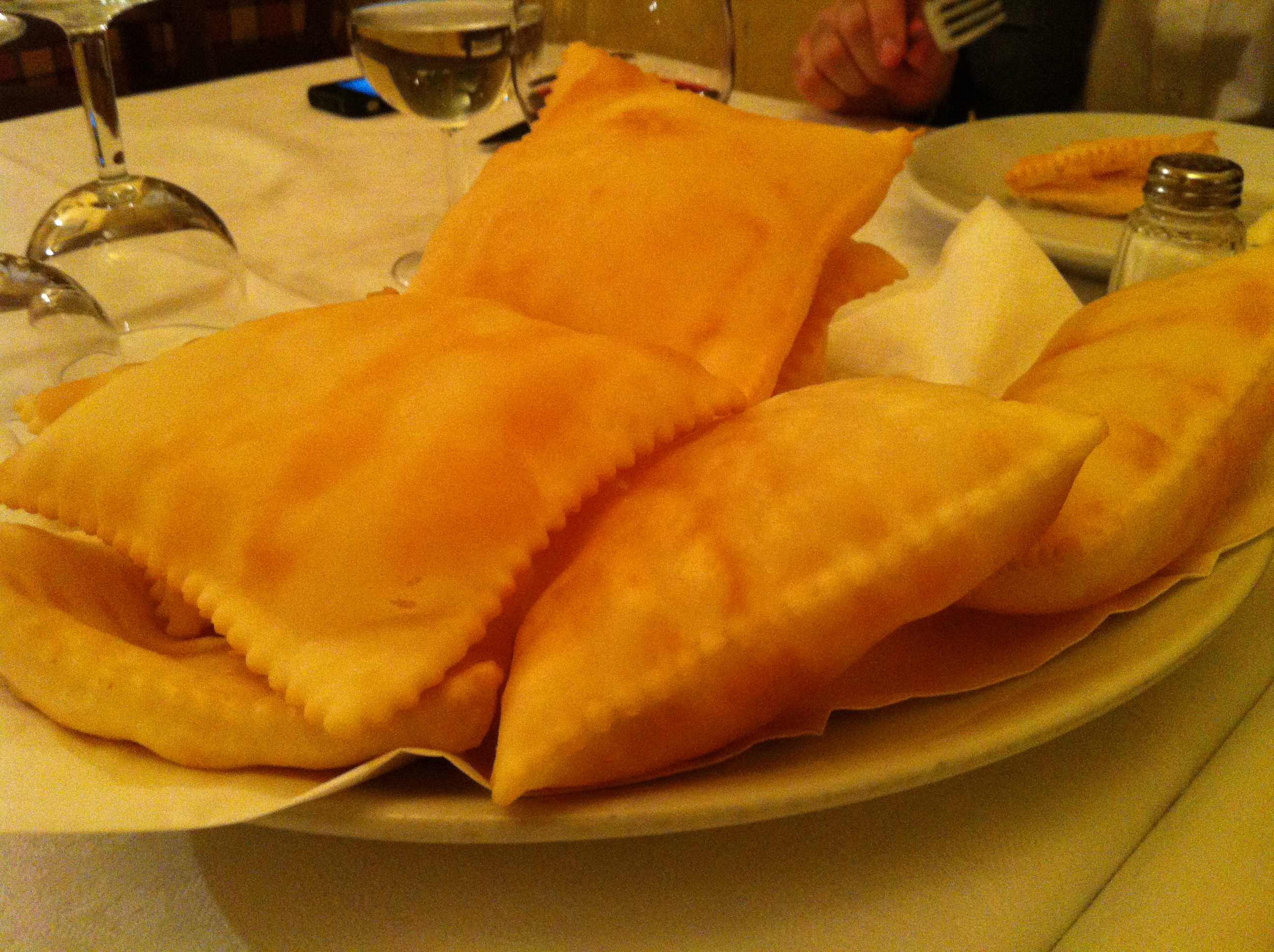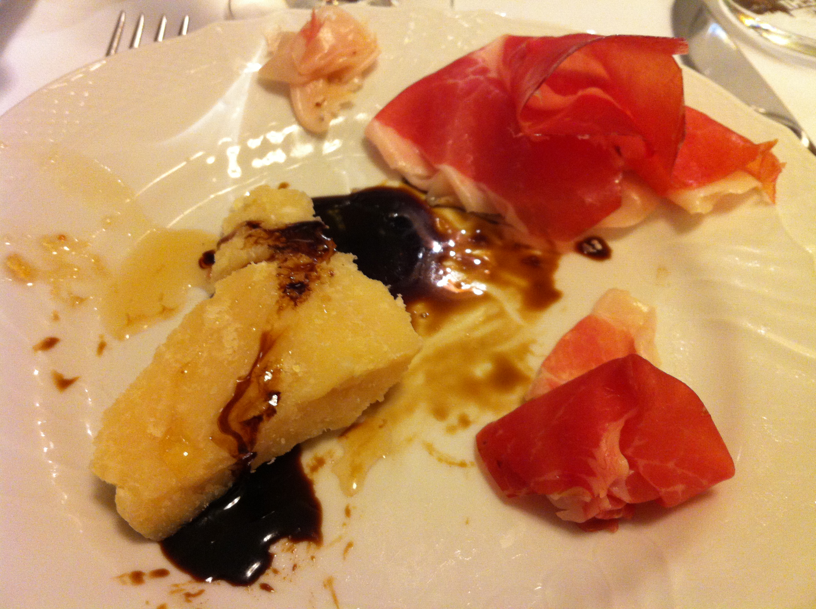 2. Pane fritto är en typ av luftigt friterat bröd som är typiskt för regionen Emilia-Romagna, där Parma ligger. I Italien är regionala mattraditioner mycket viktiga och ska omtalas och avsmakas för långväga gäster. Som glutenintolerant kunde jag så klart inte smaka just pane fritto, men de som åt intygande att det var väldigt gott. Serveras tillsammans med antipaston i tågordningen.