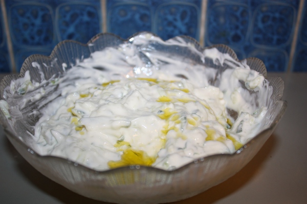 Igår blev det dags att göra årets första tsatsiki, som jag går på ett tidseffektivt och snabbt sätt. Receptet är enkelt: vitlök, yogurt, gurka, salt, svartpeppar, olivolja. Gör lite som du vill. Vanligtvis rivs och pressas gurkan för att bli av med vatten, men det går också bra att skära den i kuber. Jag orkade inte leta fram svartpeppar så jag körde utan. Egentligen ska yogurten rinna av i ett filter, vilket jag aldrig gör, och har du ingen yogurt och står ut med rinnig tsatsiki kan du fuska med filmjölk. Vitlöksmängden kan vara oändlig eller nästan ingenting. Och så vidare. Men så här gjorde jag min tsatiki igår.
