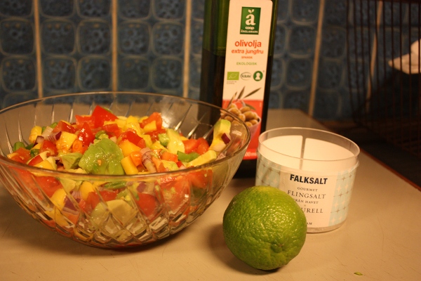 Av någon anledning (kyliga kvällar) har det blivit mycket klassiska husmanskosttillbehör till grillningen i sommar: pommes frites, ris, gräddsås. Men nu när värmen är här längtar jag efter helt andra tillbehör, som grönsaker (innehåller mer vatten än pommes frites) och kalla såser (kalla).
