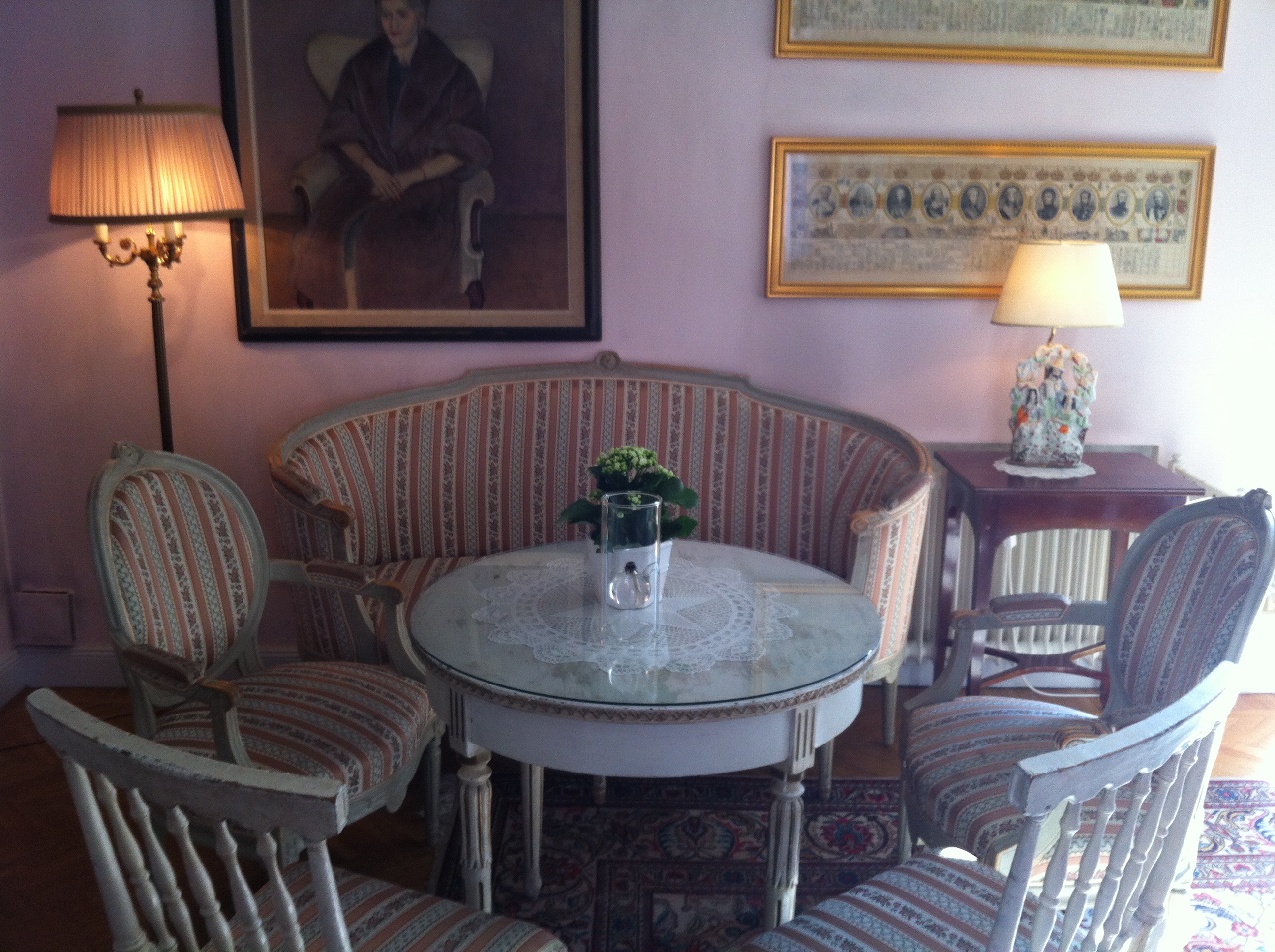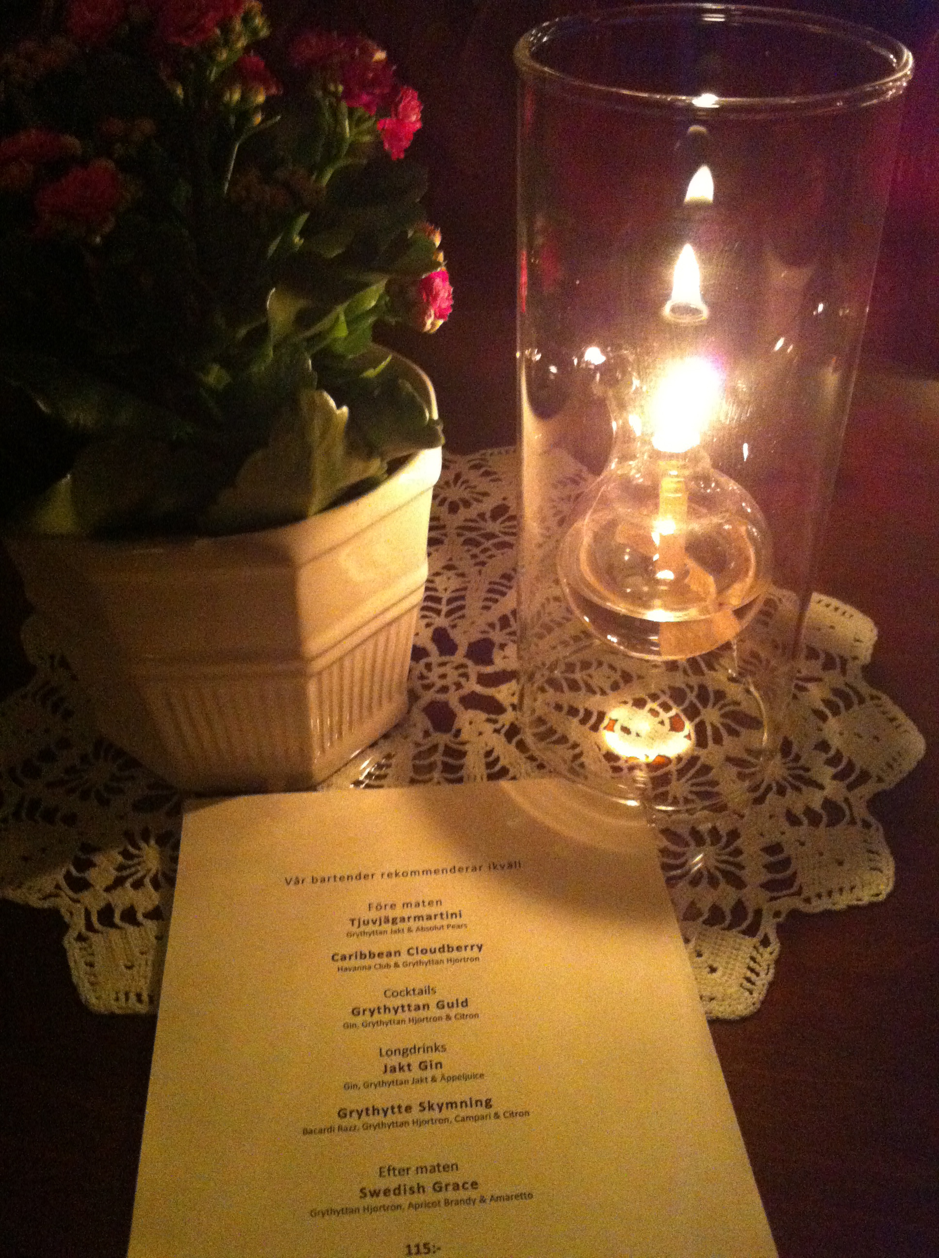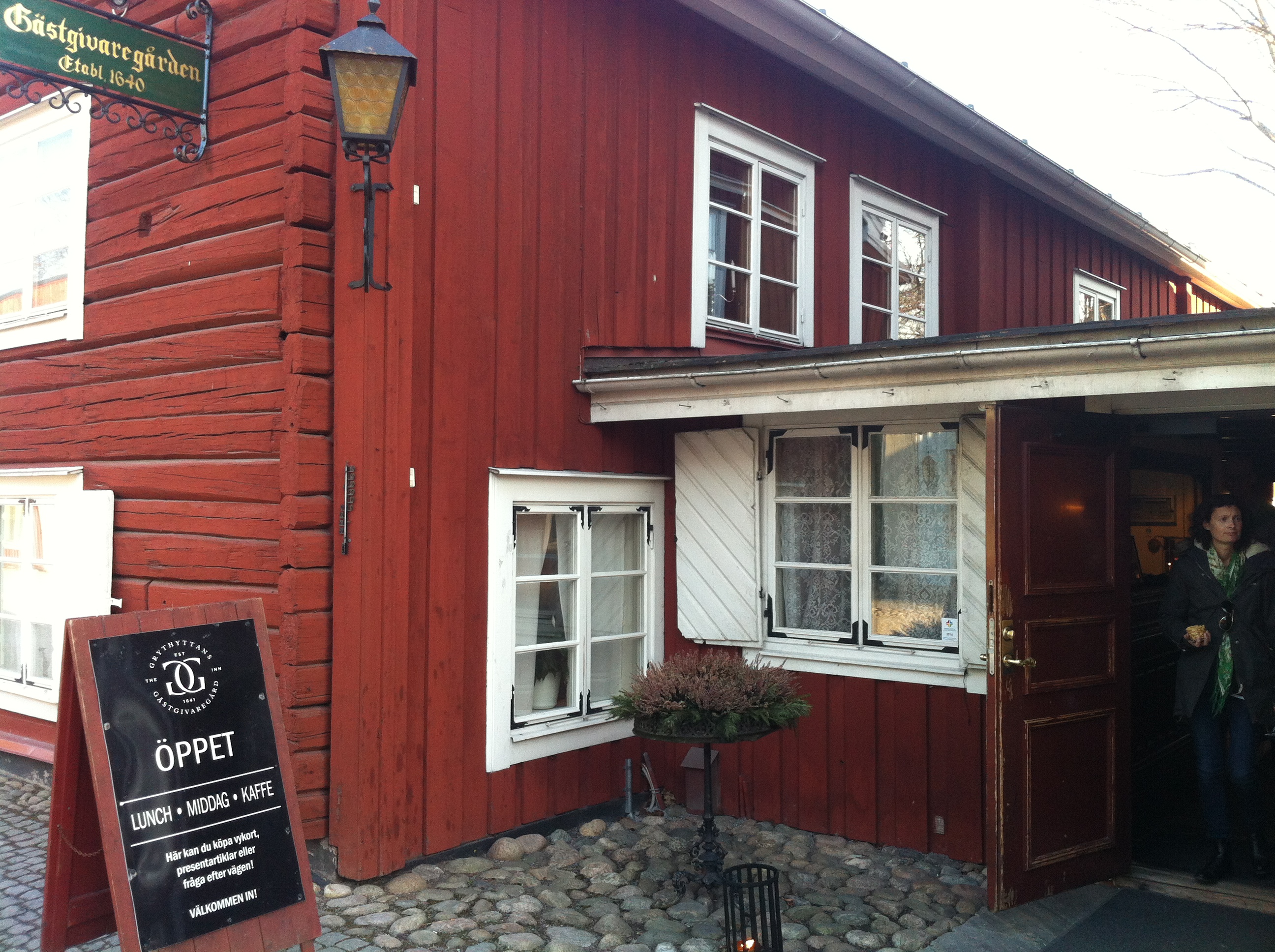 Du som har hund kan med fördel planera en weekend i Västmanland, för på Grythyttans Gästgivaregård får du ha hundar både på rummen, i restaurangen och i den underbart vackra och stora salongen (baren). I restaurangen finns till och med en hundmeny på fyra rätter (Barack och Atlas åt korvbrickan). De fyrfota cloche-täckta middagarna serveras då på bricka med vit duk. Flott ska’re va! Maten för tvåbenta är inte så bra som den borde vara, men människorna som jobbar här är underbara och salongens hemtrevlighet kompenserar för mycket. Vid vår ankomst uteblev hundskålarna på rummet, vilka enligt bokningen ska ingå i de 300 kr/hund du betalar extra, men nöjet att få åka lämna stan för ett ställe där dina hundar blir lika omhändertagen som du är helt fantastiskt! Plus för det hembakta och goda glutenfria brödet som serverades både till måltiderna och frukosten.