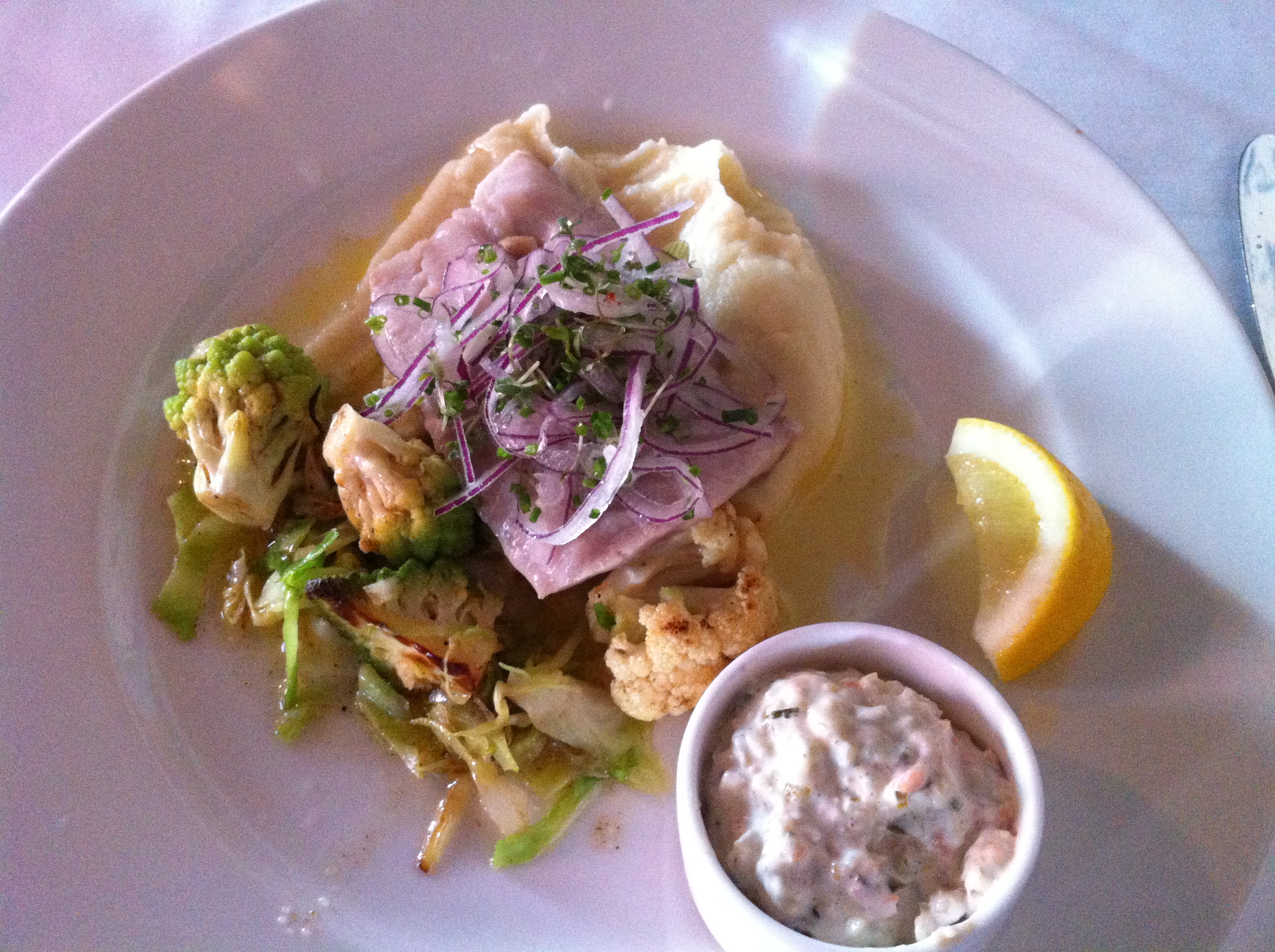 Och nej, det vita du ser på fisken nedan ska egentligen inte vara där. Det är koagulerat protein, som blir när du inte riktigt har koll på tillagningstemperaturen. Men firren smakade som den skulle ändå!