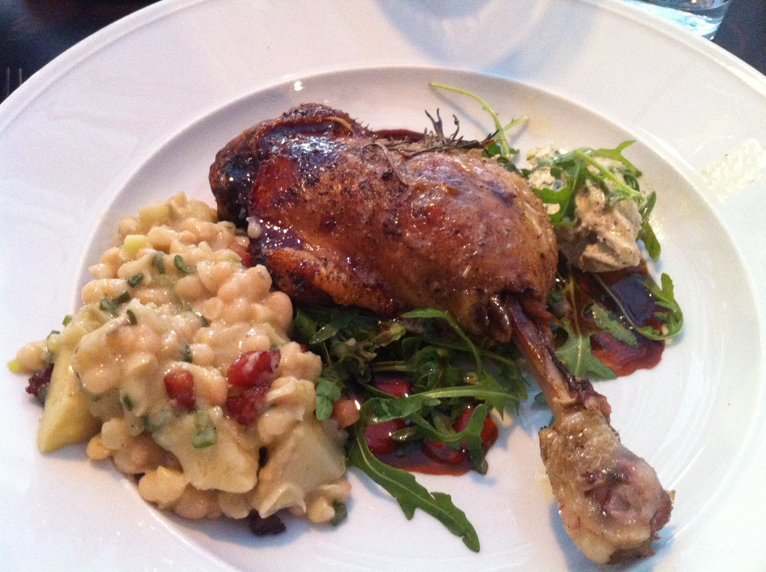 Jag åt ett confiterat anklår som inte gick av för hackor, och de som åt entrecôten var också imponerade. Den i sällskapet som är mest Tjoget-van slog också ett slag för burratan.