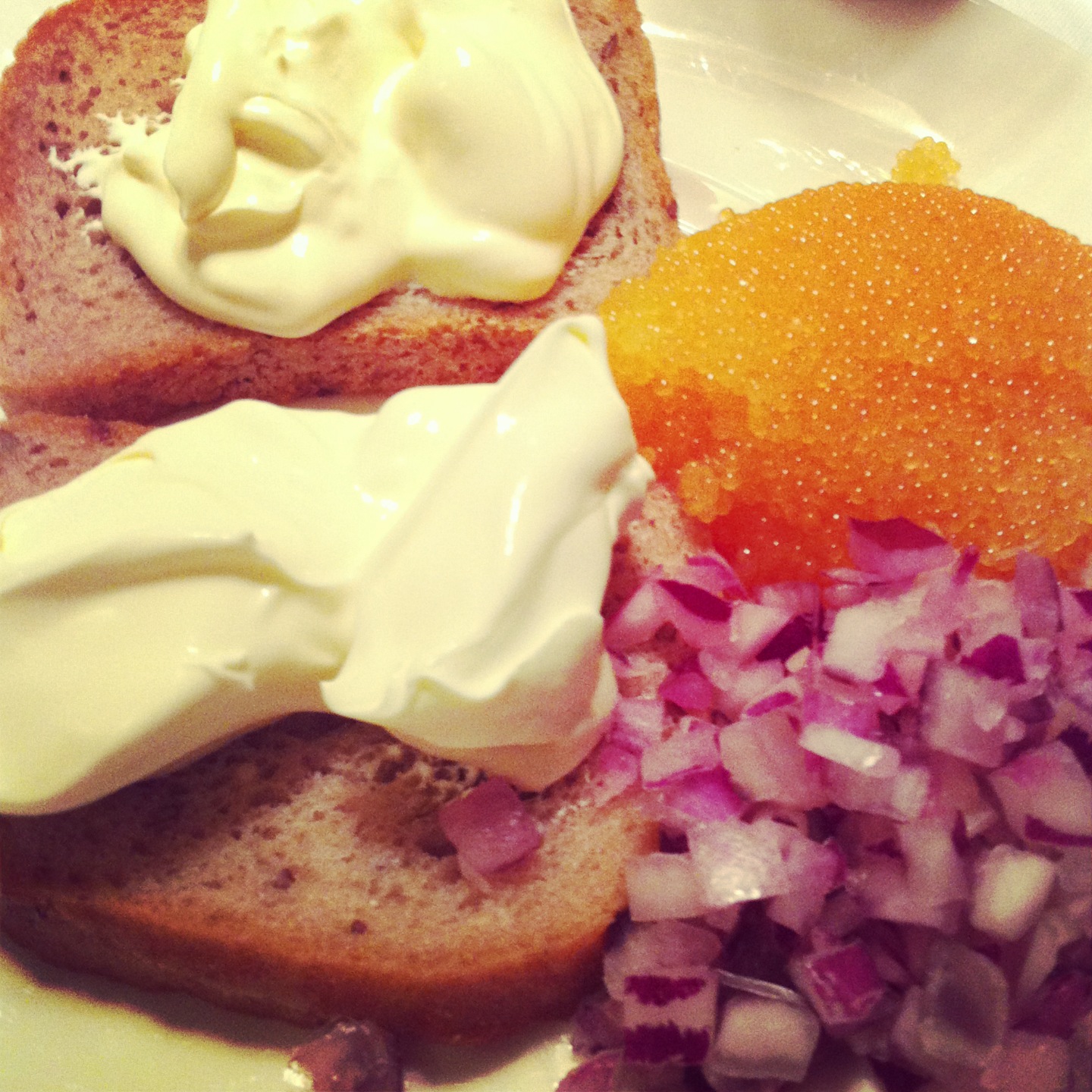 Helgen som gick var jag på kryssning på Viking Lines nya fartyg Grace, som var toppmodernt och fräscht på alla sätt! Maten ombord var bra och som vanligt när vi åker över Östersjön fanns sikrom i överflöd. Både min frukost och lunch såg ut som på bilden nedan – sikrom fanns på alla bufféer; jag äter den med smetana på glutenfri macka. Även glutenfritt bröd smakar bra med sikrom och lök.