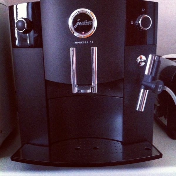 Som vi älskar vår Jura Impressa C5! Tyvärr var sjuåriga trotjänaren på lagning i juni i år och efter mindre än en månad var den trasig igen. Vet inte vad som hänt – vi trodde verkligen vi hade fått tag på lite schweizisk kvalitet. Och då maskinen är  tung och motståndet mot att springa tillbaka och förklara vår otur stort, har den blivit stående. Vi har – och nu skäms jag lite – kört pulverkaffe på Daisy Beauty-redaktionen (skönhetstidningen jag jobbar med). Och köpt kafékaffe flera gånger om dagen (dyrt!). Så när det fanns möjlighet att få låna och prova en Nescafé Dolce Gusto var jag snabb att säga ja. Nu får vi se hur kapselkaffet från bland annat Zoéga står sig mot Juras färskmalda bönor. (Vi brukar köpa våra bönor på Non Solo Bar eller Sosta.) Sambon är skeptisk.